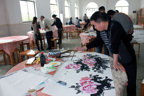 在原市人大副主任、現(xiàn)市美術家協(xié)會主席楊滌江,市文聯(lián)副主席任少云,張宗祥書畫院院長王學海,市書法家協(xié)會主席陳谷時先生的帶領下,十位全國知名書畫家走進南苑中學。為學校師生現(xiàn)場作畫、書法,展示了中華民族的傳統(tǒng)墨寶。