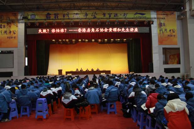 該用怎樣的心態(tài)來(lái)面對(duì)人生的失?。?月10日下午,香港房角石協(xié)會(huì)黃耀和先生一行來(lái)我校舉行題為《失???誰(shuí)怕誰(shuí)?》的勵(lì)志演講,他們結(jié)合自己的人生經(jīng)驗(yàn),娓娓道來(lái),細(xì)細(xì)述說(shuō)了自己生命中那些與失敗戰(zhàn)斗的經(jīng)歷,期望給孩子們精神上的啟迪與震撼,給他們傳遞出一個(gè)奮斗者的精神正能量。