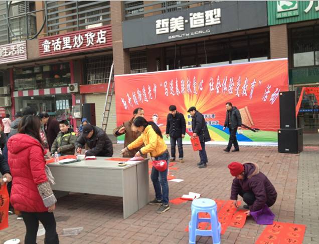 元月16日,學(xué)校黨委書記徐林、達(dá)材黨支部書記吳莉率領(lǐng)部分黨員參加新開鋪街道老少“寫送春聯(lián)獻(xiàn)愛心,社會(huì)體驗(yàn)受教育”活動(dòng)。