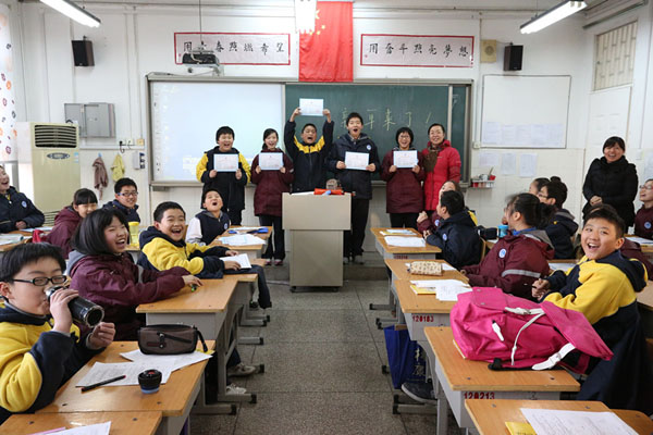 有的班級組精心制作了視頻,帶領(lǐng)學(xué)生回顧2013,確立2014新目標(biāo);有的班級組準(zhǔn)備了小型的頒獎儀式,獎勵先進(jìn),樹立典型;有的班級組在總結(jié)后精心選擇TED視頻播放,在新年即將來臨之際對學(xué)生進(jìn)行勵志教育;更有學(xué)生別出心裁,為辛苦一年的老師“頒獎”,表達(dá)感恩之情……校園中處處洋溢著幸福的氣氛和歡樂的笑聲。