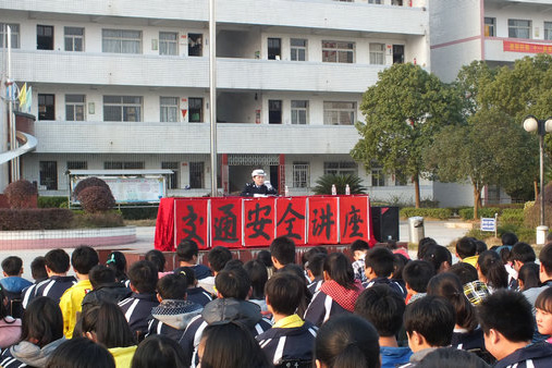 為深入實(shí)施“文明交通行動(dòng)計(jì)劃”,著力提升全縣人民特別是廣大師生員工的文明交通素質(zhì),培育交通平安文化,大力推進(jìn)平安湘潭縣建設(shè),縣公安局和縣教育局聯(lián)合開展交通安全宣傳教育“百警講千課”活動(dòng)。12月9日下午,縣公安局交警大隊(duì)譚警官給我校全體師生進(jìn)行了一場精彩的交通安全知識(shí)講座。