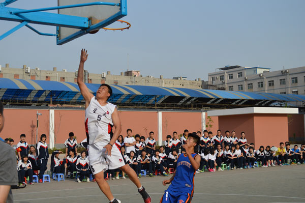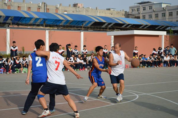 為了豐富校園文化生活,增進(jìn)師生友誼, 5月16日下午,我校舉辦了教工與學(xué)生的籃球友誼賽。隨著一聲哨響,校園的籃球場頓時熱鬧了起來,四處洋溢著緊張與激烈的氣氛。教工隊(duì)和學(xué)生隊(duì)在場上風(fēng)馳電掣,激烈的較量引起周圍觀眾的陣陣驚呼,整個賽場上加油聲,掌聲,歡呼聲此起彼伏。