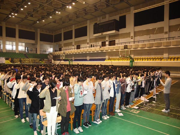 “50天我們將唱出青春無悔 ”“50天我們將笑吟12年等待”……一句句響亮的誓詞伴著一陣陣?yán)坐Q般的掌聲,回蕩在元高體藝館內(nèi),響徹云霄,激勵(lì)人心。4月17日下午,在這距離2014屆高考只有50天的特殊日子里,元高高三年級隆重舉行迎接2014屆高考五十日倒計(jì)時(shí)宣誓活動(dòng)。會(huì)議由學(xué)生處陸慧菊主任主持,高三全體師生參加了本次大會(huì)。