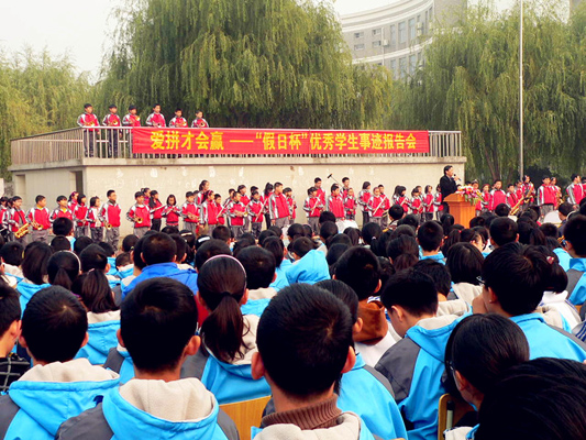 表彰會開始,過夏勝校長宣布了本次“假日杯”的所有獲獎者名單,并由胡校長和全體中層領導為獲獎者頒發(fā)獎杯和佩戴光榮花。我們深知這份榮耀不僅屬于這些優(yōu)秀學生的,更是屬于在背后默默付出的所有優(yōu)秀老師們,為了表達這份感謝,活動過程中,獲獎的同學們都把自己手中的鮮花獻給了他們敬愛的老師們!連續(xù)四年蟬聯(lián)冠軍,如此傲人的成績,明年還能創(chuàng)造奇跡嗎?初一優(yōu)秀學生代表給我們帶來了回答,相信明年他們同樣也能突破自我,為樹蘭帶來榮耀!活動最后,胡校長發(fā)表重要講話,本次表彰會在同學們的熱烈掌聲中圓滿結束!