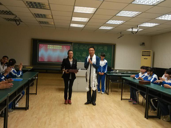 出席高二、9班“濟(jì)南白朗兩地情,漢藏班級(jí)結(jié)對(duì)親”主題班會(huì)的有白朗縣教育局教研室何芳副主任、白朗中學(xué)楊天柱副校長(zhǎng)、團(tuán)支部普布次仁副書記和八年級(jí)10班班主任白瑪央金老師。班會(huì)上,9班同學(xué)通過(guò)講述、知識(shí)問(wèn)答的形式向大家介紹了藏族風(fēng)土人情、文化傳統(tǒng)和白朗中學(xué)的概況,表演了歌曲、武術(shù)、書法、薩克斯獨(dú)奏、藏族舞蹈等節(jié)目,并特別安排朗誦了普布次仁老師的漢語(yǔ)詩(shī)作《母親》,給了他一個(gè)驚喜。9班班主任仇勇剛老師演唱了歌曲《家鄉(xiāng)》作為回應(yīng),白瑪央金和普布次仁老師為大家合唱了兩首藏族歌曲。最后,藏漢師生共跳藏族舞蹈,班會(huì)在歡聲笑語(yǔ)中結(jié)束。我校董翠娟副校長(zhǎng)、趙祥明副校長(zhǎng)、教導(dǎo)處滕巖主任和政教處張克儉副主任陪同出席了班會(huì)。