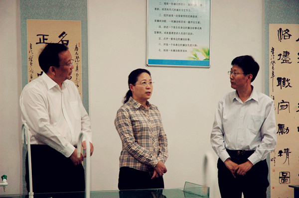 李建華書(shū)記察看了我校廉潔教育講堂、黨風(fēng)廉政建設(shè)會(huì)議室等功能室,視察了校容校貌和校園文化建設(shè),并走進(jìn)新疆班學(xué)生廚房和餐廳,了解新疆班學(xué)生伙食管理情況。隨后在召開(kāi)的座談會(huì)上,校長(zhǎng)喬德金匯報(bào)了學(xué)校落實(shí)黨風(fēng)廉政建設(shè)的工作情況,并介紹了育才中學(xué)的辦學(xué)理念、辦學(xué)特色、文化建設(shè)、師資實(shí)力和教學(xué)成績(jī)。