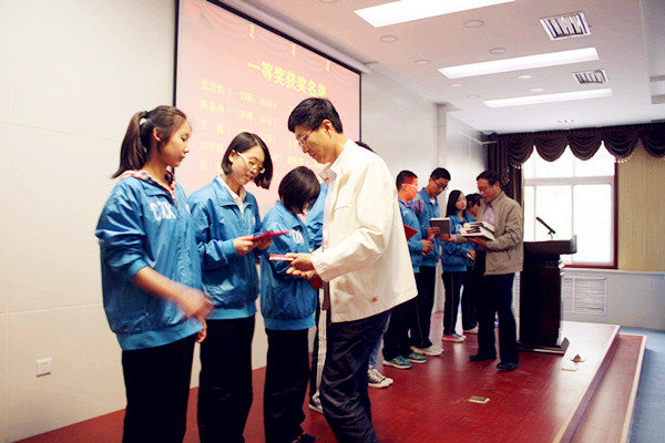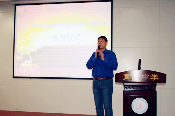 校長喬德金作重要講話。喬校長首先對(duì)參賽同學(xué)在有限的時(shí)間內(nèi)創(chuàng)作出高質(zhì)量的散文佳作表示贊賞和肯定。喬校長表示,在越來越重視語文教育的高考改革大潮中,這些獲獎(jiǎng)選手不僅是語文學(xué)習(xí)中的榜樣,更有機(jī)會(huì)成長為文學(xué)世界里的弄潮兒。喬校長以西方發(fā)達(dá)國家的教育經(jīng)驗(yàn)鼓勵(lì)參賽選手要大膽走出去,慧具國際視野,培養(yǎng)與世界同步的綜合實(shí)力,并希望同學(xué)們以比賽為契機(jī),更加熱愛閱讀、熱愛寫作,自覺提高語文綜合素質(zhì),讓我校的語文學(xué)習(xí)充滿生機(jī)與活力。頒獎(jiǎng)儀式當(dāng)天恰逢五四運(yùn)動(dòng)95周年紀(jì)念日,喬校長語重心長的發(fā)言后,全場起立齊誦毛澤東同志詩詞名篇《沁園春·長沙》,學(xué)生們用慷慨激昂的聲音傳遞出育才師生的青春激情。