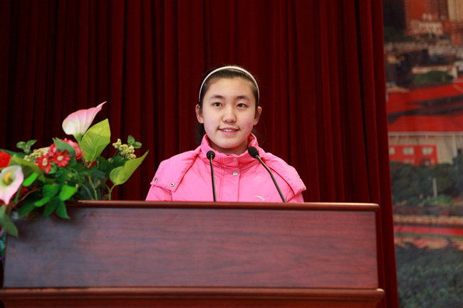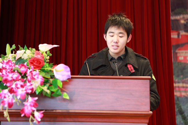 在2013年度江蘇省學(xué)科奧林匹克競賽中榮獲數(shù)學(xué)、物理、化學(xué)、生物、信息學(xué)五個省級一等獎、其中三項是國家一等獎的張子筠同學(xué),作為陳蔭川競賽類獎學(xué)金的代表上臺發(fā)言。她的發(fā)言重點談如何處理好競賽與高考的關(guān)系,如何有效利用自由支配的時間,使在座同學(xué)深受啟發(fā)。