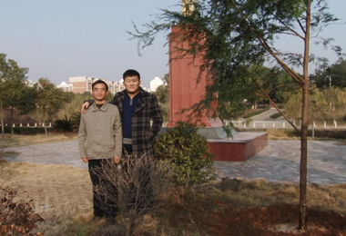 李玲波與高中班主任藍(lán)承玝在新植的樹木前合影