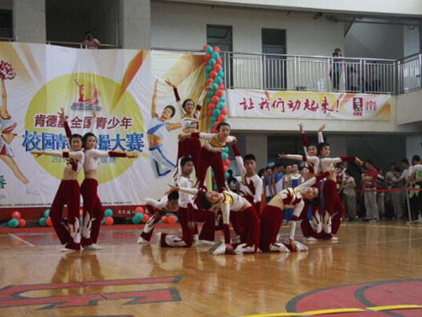 5月25日,由濟南市教育局主辦的肯德基全國校園青春健身操大賽濟南市級賽在濟南第11中學舉行,來自全市高中、職專的的30支隊伍近600名選手參加了當天的比賽,歷城二中代表隊在上午健身操基礎套路的比賽中,列18支隊伍第二名,獲得特等獎,在下午啦啦操提高套路比賽中,獲得二等獎。張蕊、成玉紅老師被評為優(yōu)秀指導教師。