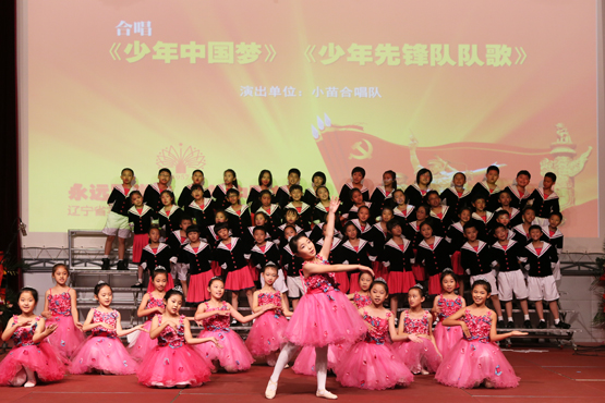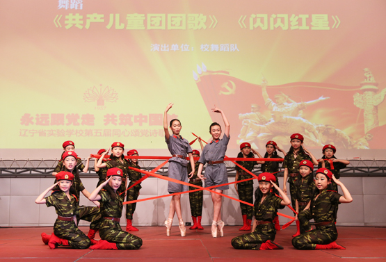 附屬幼兒園教師的舞蹈《愛我中華》,在校參加崗前培訓(xùn)的沈北合作校的新聘教師的歌伴舞《走進(jìn)新時(shí)代》,唱出了膾炙人口的時(shí)代強(qiáng)音,舞出了實(shí)驗(yàn)人建設(shè)實(shí)驗(yàn)、建設(shè)中華的情懷。家長委員會代表的《永遠(yuǎn)跟黨走 共筑中國夢》詩歌朗誦,以高亢激昂的旋律表達(dá)出全校師生及家長愛校、愛黨、愛國的信念。老干部合唱團(tuán)成員和教師、少先隊(duì)員代表及學(xué)校小苗合唱團(tuán)的合唱《共筑中國夢》《我們走在大路上》《少年中國夢》《少先隊(duì)隊(duì)歌》唱出了全校上下幾代人齊心攜手共筑夢想的心胸意氣和豪情壯志。