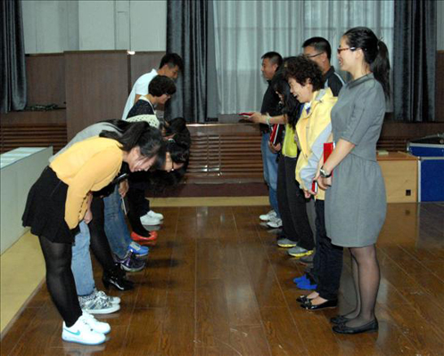 本次會(huì)議由沈陽(yáng)二中科研處主任邵李寧同志主持。同時(shí),宣讀了“2013年新入職教師的指導(dǎo)教師、指導(dǎo)班主任聘任安排”。拜師會(huì)上,首先由師徒雙方共同簽署《沈陽(yáng)二中師徒結(jié)對(duì)協(xié)議書(shū)》、《沈陽(yáng)二中班主任師徒結(jié)對(duì)協(xié)議書(shū)》,以此為準(zhǔn)則,師徒共同承擔(dān)相關(guān)的職責(zé)與義務(wù),遵守學(xué)校規(guī)定的基本要求,并且在實(shí)踐中不斷改進(jìn)和完善,使師徒間形成一個(gè)團(tuán)結(jié)合作、互幫互進(jìn)、共同進(jìn)步的良好氛圍。師徒關(guān)系確立后,新青年教師向自己的師父行拜師禮,以永結(jié)師徒之誼。
