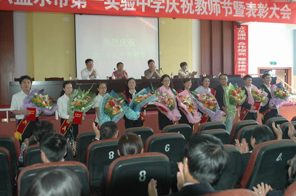 這次大會(huì)的主題是:表彰爭(zhēng)先創(chuàng)優(yōu)的先進(jìn)典型,營(yíng)造尊師重教的濃厚氛圍,以選樹(shù)典型、爭(zhēng)先創(chuàng)優(yōu)的實(shí)際工作及行動(dòng),慶祝自己的節(jié)日。少先隊(duì)員們向辛勤的園丁獻(xiàn)上了節(jié)日的祝詞。杜虹潔副校長(zhǎng)宣讀了校黨委、校行政、校工會(huì)《關(guān)于表彰2012—2013學(xué)年度優(yōu)秀教師、先進(jìn)教育工作者的決定》和《關(guān)于表彰“文明標(biāo)兵”、“文明家庭”、“文明窗口”、“文明班級(jí)”和“優(yōu)秀班主任”的決定》。表彰了匡定晚等77名優(yōu)秀教師,黃靜等14名先進(jìn)教育工作者,趙衛(wèi)紅等10名文明標(biāo)兵,張樂(lè)等10個(gè)文明家庭,高中教務(wù)等5個(gè)文明窗口,初一(1)班等30個(gè)文明班級(jí),付春燕等30名優(yōu)秀班主任和馬敏國(guó)、蔡新亮兩名優(yōu)秀年級(jí)主任。上級(jí)領(lǐng)導(dǎo)和校領(lǐng)導(dǎo)為受到表彰的同志頒獎(jiǎng)。馬波老師代表先進(jìn)個(gè)人作了熱情洋溢的發(fā)言(全文另行刊發(fā))。藺代平主任代表市教育局向全體教職員工致以節(jié)日的祝賀,祝福大家身體健康、工作順利。李植校長(zhǎng)在講話(huà)中指出,在慶祝自己節(jié)日的時(shí)候,全體教職員工要一如既往,頑強(qiáng)拼搏,全面完成今年的各項(xiàng)工作任務(wù),向全市人民交出一份合格的答卷。會(huì)后,受表彰的教職工合影留念。