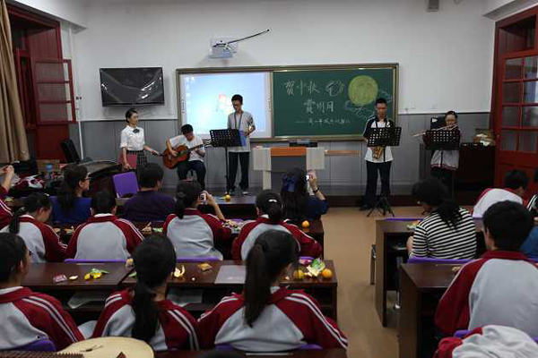 2013年9月18日,高一年級全體學生舉行了“賀中秋 賞明月”聯(lián)歡活動。同學們積極投入前期準備,在演出中展現(xiàn)了自己的才藝。本次聯(lián)歡會,特別突出了對中秋文化傳統(tǒng)的傳承,特別增加了中華漢字聽寫與古詩詞填空大比拼環(huán)節(jié),贏得了同學們的喜愛。每位參與活動準備與表演的同學,也收獲了合作的快樂與大家的認可。海上生明月,天涯共此時。本次活動盡顯濃濃的團圓之情與中秋文化之美。希望高一年級的全體同學共同銘記這個美好的夜晚。