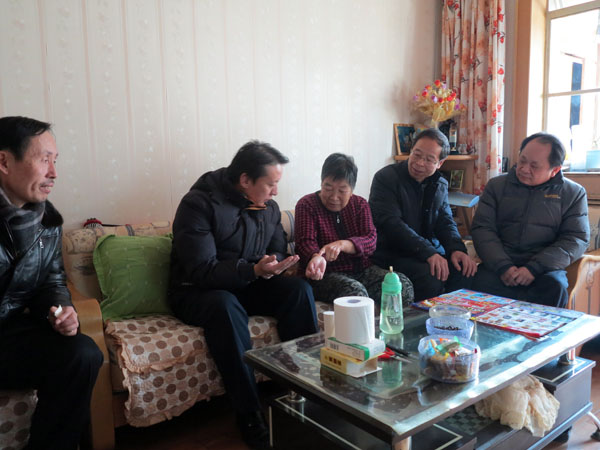 校領(lǐng)導(dǎo)來到退休保管員劉文的家中,與她拉起家常,詳細(xì)詢問她心臟支架手術(shù)后的身體狀況和生活中遇到的實(shí)際困難,鼓勵(lì)她樹立信心,以積極樂觀的心態(tài)走出眼前身體的困境;在90年代中期就行走不便在家修養(yǎng)的陳代君老師家中,得知其將要赴成都居住,校領(lǐng)導(dǎo)盛情邀請(qǐng)她在天氣轉(zhuǎn)暖的時(shí)候,回校參觀,再次共同回味她那輝煌的教學(xué)生涯;從高峰老師和楊安民老師家中出來,校領(lǐng)導(dǎo)表示注重人文關(guān)懷是踐行黨的群眾路線的具體體現(xiàn),黨的群眾路線教育實(shí)踐活動(dòng)搞得好不好,對(duì)外要看學(xué)生和家長對(duì)我們的教育教學(xué)是否滿意,對(duì)內(nèi)要看在服務(wù)在職和退休教職工方面有沒有新進(jìn)展;看到常年重病臥床的魏秀云老師已經(jīng)能下地走路,校領(lǐng)導(dǎo)十分欣慰。并現(xiàn)場安排,在新的年度,學(xué)校要搞好每月一次的工會(huì)小家月活動(dòng),幫助困難職工和退休職工解決實(shí)際問題,讓在職和退休教師都能共享各自的幸福生活。
