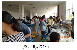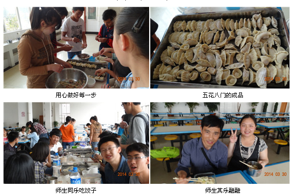 新校區(qū)1203班以加強班級文化建設(shè)為主題,形成互幫互助、取長補短的班風(fēng)班紀(jì)為目標(biāo),促進(jìn)同學(xué)間感情交流為基礎(chǔ),為每一位同學(xué)的全面發(fā)展為根本。全體師生在3月30日舉行了“包餃子,比勤勞”的活動。活動現(xiàn)場,同學(xué)們熱火朝天,師生間其樂融融。大家比速度,賽創(chuàng)意,你搟面來我包餃。各種樣式新穎,美味獨特的餃子在同學(xué)們手中包出,餃子在師生中的陣陣歡笑聲中被分享,一個個小小的餃子包含著同學(xué)間的友誼,體現(xiàn)出師生間濃厚的情誼。