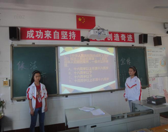 班會活動以“學(xué)法、守法、敬法、用法”為主題,班會上,各班緊扣主題,班會活動形式多樣,有的班老師結(jié)合學(xué)生特點和學(xué)校實際,通過引用大量典型的有針對性的案列,深入淺出、形象生動地給同學(xué)們講解了青少年犯罪的基本概念、行為類型及特征,分析了青少年犯罪的原因,闡述了青少年犯罪的防治對策;有的班組織學(xué)生學(xué)習(xí)《憲法》、《預(yù)防未成年人犯罪法》、《治安管理處罰法》等法律法規(guī);有的班進(jìn)行了法律知識競賽活動;還有的班倡議全班同學(xué)承諾不進(jìn)臺球室、網(wǎng)吧、酒吧、游戲廳、錄像廳、歌舞廳,不遲到曠課,杜絕小摸小偷、以大欺小、攜帶管制刀具等不良行為等活動。