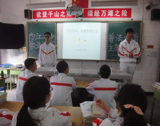 為貫徹落實中央、省、市關(guān)于依法治市的文件精神,進(jìn)一步提高學(xué)生的法律素質(zhì)和法制觀念,4月14日,內(nèi)江二中在全校各班開展了依法治市主題班會活動。