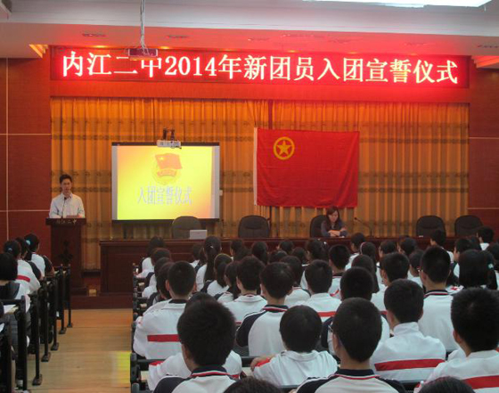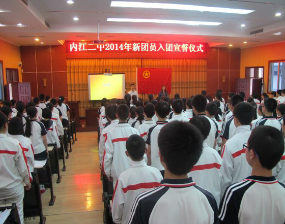 2014年5月9日,內(nèi)江二中300余名新團員懷著無比激動和興奮的心情,在學校演講廳舉行了莊嚴的入團宣誓儀式。