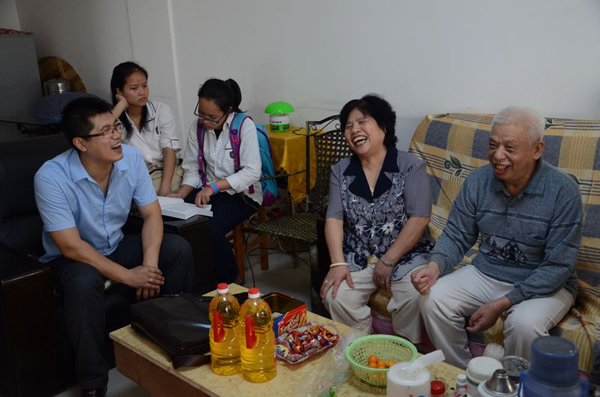 為了弘揚(yáng)雷鋒精神,發(fā)揚(yáng)“樂于助人,無私奉獻(xiàn)”的光榮傳統(tǒng),引導(dǎo)和強(qiáng)化學(xué)生樹立“服務(wù)人民,奉獻(xiàn)社會”的精神,豐富我校學(xué)生的社會實(shí)踐和志愿服務(wù)活動,我校團(tuán)委于2013年3月24日上午,組織青年教工和學(xué)生志愿者,捧著一顆誠摯的心,攜帶米、油等慰問品,來到高新區(qū)創(chuàng)新社區(qū),對空巢老人進(jìn)行慰問。志愿者們不僅為老人打掃衛(wèi)生,整理房間,幫老人調(diào)琴,還坐下來與他們親切交談,聽老人們敘述過往的經(jīng)歷,欣賞舊照片等。