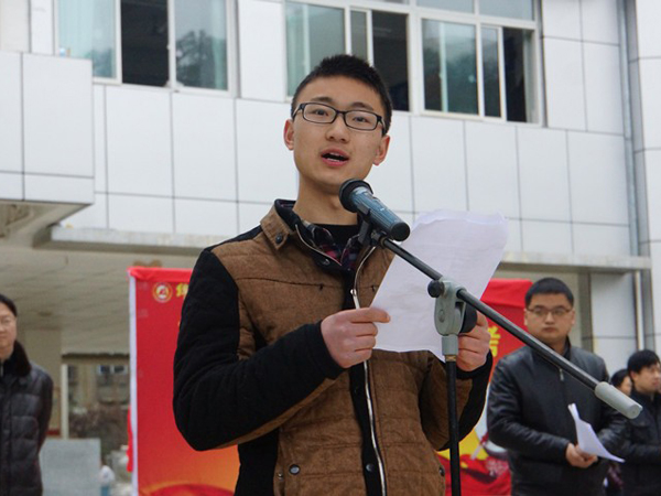 緊接著,在陳麟主任領(lǐng)誓下,高三年級(jí)領(lǐng)導(dǎo)小組、全體班主任及備課組長舉行了莊嚴(yán)宣誓儀式。面對(duì)教師真誠的祝福和鄭重的承諾,學(xué)子們熱血沸騰了,掌聲此起彼伏。教師宣誓完畢,學(xué)生代表李陽同學(xué)發(fā)表了演講,表達(dá)了向著勝利勇往直前的信心。他帶領(lǐng)全體同學(xué),以青春的名義,舉起右拳,莊嚴(yán)宣誓,他們躊躇滿志、信心百倍,錚錚誓言響徹校園。在擲地有聲、抑揚(yáng)頓挫的誓詞中,大會(huì)達(dá)到高潮。