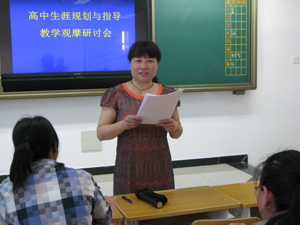 5月12號,高中職業(yè)生涯規(guī)劃與指導教學觀摩研討會在我校召開。與會人員有中教科領(lǐng)導、部分高中校副校長、課程中心負責人、教研中心心理教研員及全區(qū)初、高中心理教師。與會人員觀摩了我校王曉娟老師在高二(14)班講授的《性格與職業(yè)》一課,并對此課給予了充分肯定和高度評價。觀摩課后首先由教研中心心理教研員柴振榮就心理課與職業(yè)生涯規(guī)劃的整合談了自己的構(gòu)想及建議,然后由課程中心負責人張愛兵主任就我區(qū)如何開展職業(yè)生涯規(guī)劃課程談了設(shè)想及具體實施的要求,最后中教科張小立老師鼓勵廣大教師走出去向先進校學習,并指出我區(qū)開展職業(yè)生涯課程的美好前景。