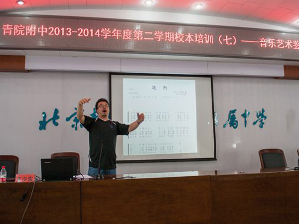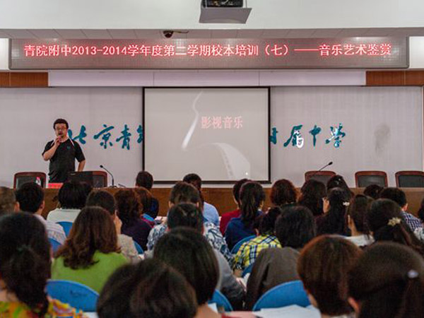 2014年5月13日,青院附中音樂教研組長王少東老師為全體教職工中做了一次影視音樂賞析的主題培訓(xùn)。
