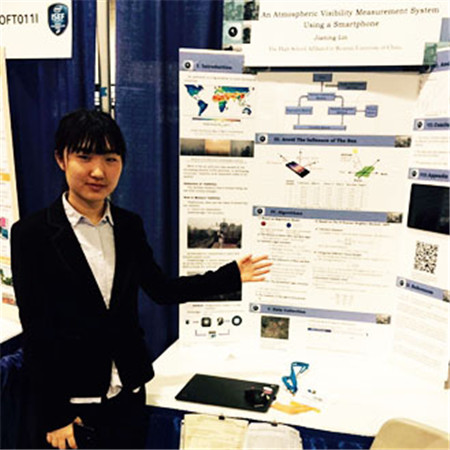 美國(guó)時(shí)間2015年5月15日,歷時(shí)6天的第66屆英特爾國(guó)際科學(xué)與工程大獎(jiǎng)賽(簡(jiǎn)稱Intel ISEF)在美國(guó)匹茲堡市圓滿閉幕。我校林家寧同學(xué)的《智能手機(jī)大氣能見(jiàn)度測(cè)量方法》獲“系統(tǒng)軟件學(xué)科三等獎(jiǎng)”,同時(shí)獲美國(guó)氣象學(xué)會(huì)頒發(fā)的專項(xiàng)獎(jiǎng)一等獎(jiǎng)。