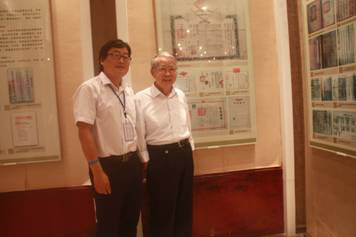 李吉均院士與盧前松校長在李院士的中學(xué)畢業(yè)證前合影