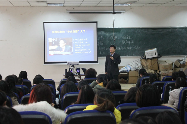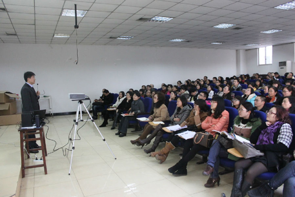 2013年12月9日下午,我校全體英語教師在主教樓一樓會議室參加了北京外國語大學(xué)語言教育測評中心副主任、博士生導(dǎo)師霍慶文教授的講座。沈欣校長參與并主持了本次講座。