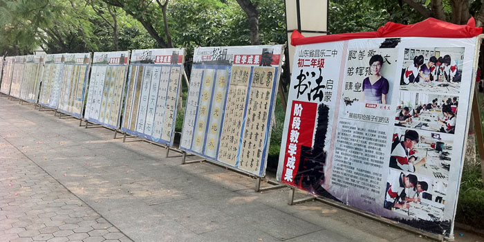 2014年6月26日,我校在金鑰匙廣場(chǎng)成功舉辦初二級(jí)書法啟蒙階段成果展。