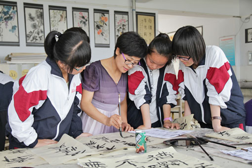 在學(xué)校的“承民族傳統(tǒng)、育人文素養(yǎng)、創(chuàng)書香校園”教育理念下,我校積極開展書法課的啟蒙與實(shí)踐活動(dòng),率先在初二年級(jí)開設(shè)了書法課。讓同學(xué)們?cè)诤材珪阒懈惺芙?jīng)典文化,提升修養(yǎng)志趣,培養(yǎng)高尚人格.
