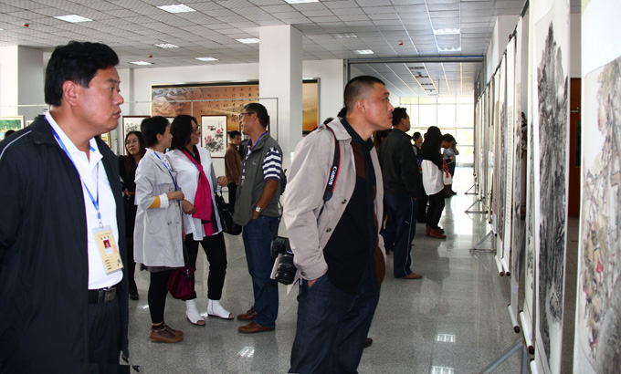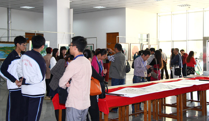 市教學研究指導中心綜合教研室翟衍華老師宣讀了《平度教育書畫協(xié)會章程(草案)》并對協(xié)會活動安排進行了布置,會后入會者參觀了部分會員的作品展示并分組進行了交流、賞析。