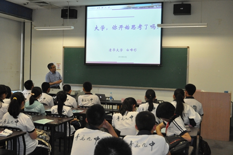 行程的第一站是百年名校清華大學(xué),我們?cè)谇迦A大學(xué)的教學(xué)大樓里聆聽(tīng)了清華教授白峰杉教授的講座《大學(xué),你開(kāi)始思考了嗎》。他讓我們更加真切的了解了大學(xué)生活,讓我們明白自己前進(jìn)的方向。我們與清華的學(xué)哥學(xué)姐們進(jìn)行談話交流,聽(tīng)他們講述各自的求學(xué)之路,分享他們的人生感悟,我們從中學(xué)到了許多不可多得的經(jīng)驗(yàn)。要想看到好的風(fēng)景,就要努力往高處走。同學(xué)們?cè)诖硕键c(diǎn)燃了自己的夢(mèng)想,要努力讓自己的夢(mèng)想種子開(kāi)花結(jié)果。