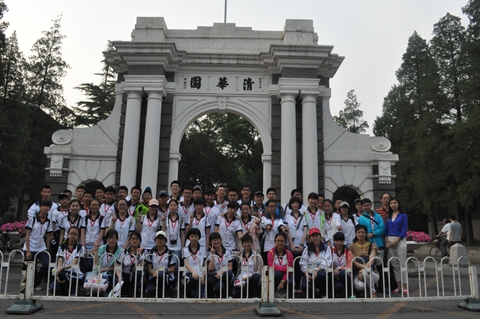 隨后,我們走入了這個(gè)傳統(tǒng)風(fēng)采與現(xiàn)代化氣息共存的校園,讓我們看到了百年清華在漫長(zhǎng)歲月中的成長(zhǎng)與發(fā)展。行走在校園,可以看到清華學(xué)子大多行色匆匆,騎著自行車穿行各處,沒(méi)有歡聲笑語(yǔ),平添一份嚴(yán)謹(jǐn)求學(xué)的態(tài)度。漫步于水木清華郁郁蔥蔥的荷塘邊,思考著未來(lái)的高中三年,希望和這一池碧葉般,生機(jī)勃勃。在這里,不時(shí)地還能看到外國(guó)留學(xué)生和清華學(xué)子討論交談,那是文化的深入交流,思想的激情碰撞。站在大學(xué)校門前仰望,心里滿是無(wú)限憧憬,我們合影留戀,把夢(mèng)想深埋在心。