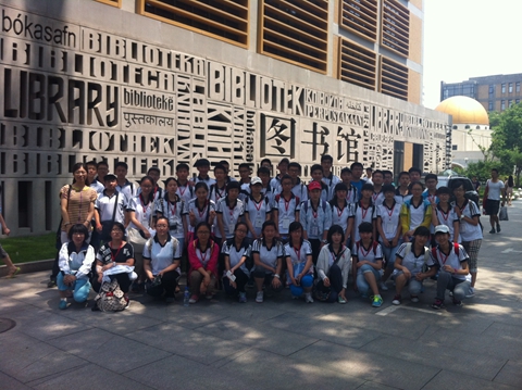 北京外國(guó)語(yǔ)大學(xué)是我們此次游學(xué)最后一站,這里是學(xué)習(xí)外語(yǔ)的天堂,各種各樣的語(yǔ)言專業(yè)讓我們眼花繚亂。我們一起在北外的圖書(shū)館門口合影,欣賞著圖書(shū)館門口由各種語(yǔ)言翻譯成的“圖書(shū)館”,看著校園里信心滿滿的學(xué)長(zhǎng)、學(xué)姐,感受著濃濃的書(shū)香氣息。同學(xué)們認(rèn)真聆聽(tīng)了北京外國(guó)語(yǔ)大學(xué)徐教授的講座《歐洲世界眼中的中國(guó)形象》。從這次講座中我們了解到了外國(guó)人眼中的中國(guó)人的優(yōu)點(diǎn)與不足,學(xué)習(xí)到了改正這些不足的方法。在這里我們也學(xué)到了許多學(xué)習(xí)外語(yǔ)的方法,讓我們有了更多學(xué)習(xí)的方式。