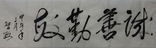魏華中校長、劉欣友書記還陪同蔡社長一行參觀了我校校園,客人們對我校的綠化美化情況贊不絕口,對磅礴、大氣、整潔、美麗、充滿文化氣息的現(xiàn)代苑印象深刻。蔡社長欣然提筆,為我校題寫了“誠善勤敏“校訓(xùn),并留下了“會當(dāng)凌絕頂,一覽眾山小”的美好祝愿。