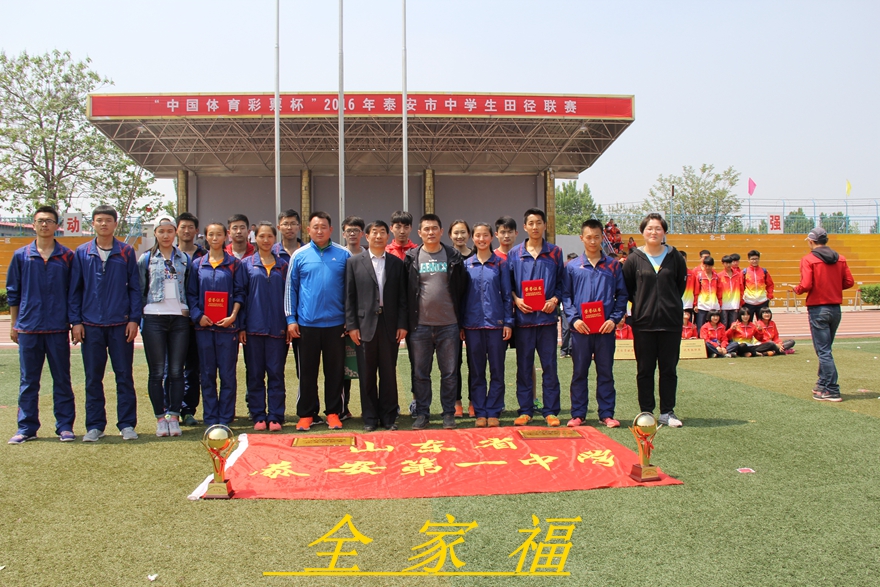 4月21-24日,泰安市2016年“體彩杯”中學(xué)生田徑運(yùn)動(dòng)會(huì)在寧陽(yáng)一中隆重舉行。我校代表隊(duì)相互激勵(lì)、團(tuán)結(jié)協(xié)作、頑強(qiáng)拼搏、奮勇?tīng)?zhēng)先,共打破5項(xiàng)大會(huì)最高紀(jì)錄,刷新6項(xiàng)聯(lián)賽紀(jì)錄,以團(tuán)體總分256分名列第一名,榮獲“局長(zhǎng)杯”;我校運(yùn)動(dòng)健兒堅(jiān)忍不拔的意志品質(zhì)和積極向上的精神風(fēng)貌,贏得大會(huì)組委會(huì)一致贊許,榮獲“體育道德風(fēng)尚獎(jiǎng)”、“優(yōu)秀組織獎(jiǎng)”。
