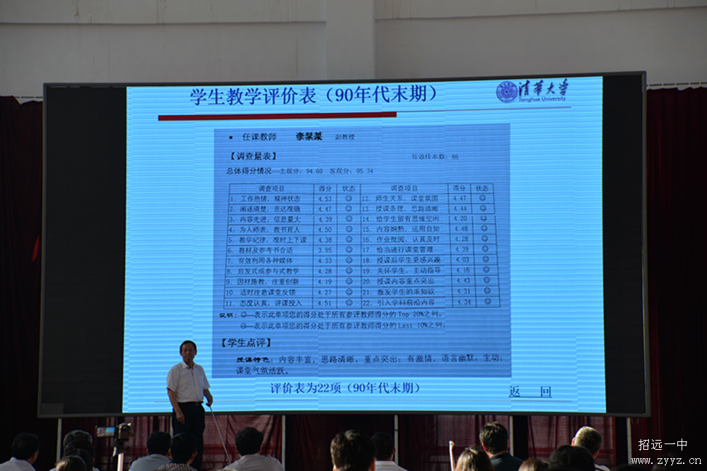 聆聽張教授演講,讓人感覺似在欣賞一場美妙絕倫的音樂演唱會(huì)。流暢婉轉(zhuǎn)而又高潮不斷,講者激情澎拜,聽者聚精會(huì)神。他嚴(yán)謹(jǐn)?shù)慕虒W(xué)態(tài)度、精湛的學(xué)術(shù)功底、縝密的邏輯思維、幽默詼諧的語言、真實(shí)豐富的教學(xué)案例、精辟獨(dú)到的見解給在場的每位教師留下了深刻印象。4個(gè)小時(shí)的報(bào)告,張教授一直保持激情四射,會(huì)場氣氛異?;钴S。老師們在笑聲和掌聲中,無不被張教授身上所折射出的“做事先做人”的高尚師德所感動(dòng),讓我們所有教師享受了一次豐盛的文化教育大餐。張教授——70歲的老教授,廣研博學(xué),值得我們敬慕;70歲的老教師,治學(xué)嚴(yán)謹(jǐn),值得我們學(xué)習(xí);70歲的老人,激情睿智,值得我們尊重。