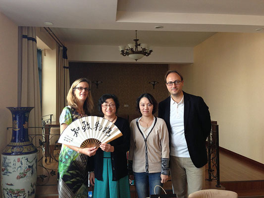 在觀摩高三(9)班朱躍雋老師繪聲繪色的英語課后,王麗萍書記和馬瑩主任在學(xué)校工會咖啡屋里接見了來賓,向來賓介紹了學(xué)校歷史、教師培訓(xùn)、學(xué)生海外課題項(xiàng)目以及校園課余生活等。雙方就校際交流、英語課程建設(shè)等交換了意見。瑞典校長為格致學(xué)生出色的學(xué)習(xí)成績而欽佩,希望學(xué)習(xí)借鑒格致的教育模式。