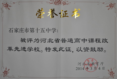 近日從河北省2014年全省基礎(chǔ)教育工作會議上獲悉,石家莊市第十五中學(xué)榮獲河北省普通高中課程改革先進(jìn)學(xué)校稱號。