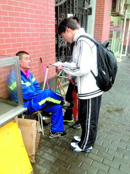 在撰寫開題報告時,指導(dǎo)老師要求鄭智鐳他們通過查閱資料、制訂計劃為整個調(diào)查活動“謀好篇,布好局”。隨即,小組成員帶著“上海清潔工人數(shù)多少”、“上海市民對清潔工的認知情況如何”等常識問題“詢問”了百度,但有效信息微乎其微。小組成員薛珺清說:“組內(nèi)成員決定一同奔赴上海圖書館,查閱相關(guān)報道新聞、國內(nèi)外文獻資料等?!苯?jīng)過數(shù)天的忙活,各類資料的收集工作完成,他們也進入了活動的攻堅階段——項目實施。