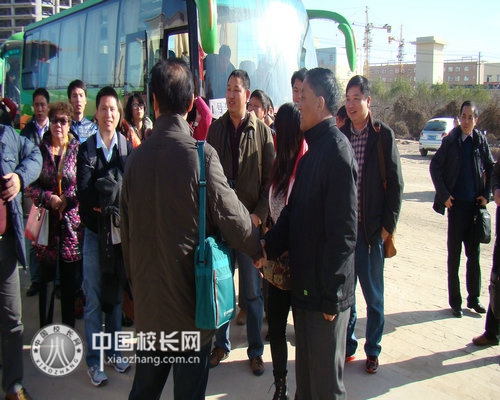 我校創(chuàng)辦人陳琳在校門(mén)口迎接廣東民辦教育考察團(tuán)一行