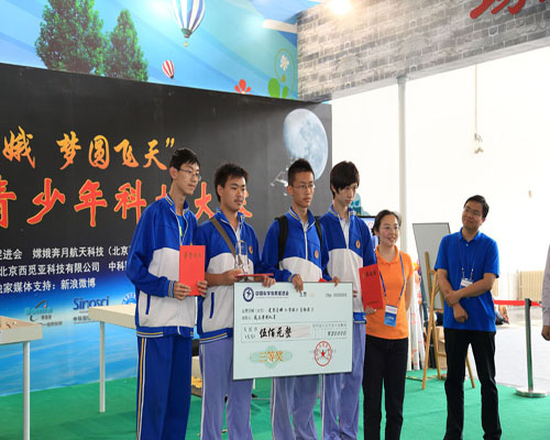 2014年5月19日,在北京召開(kāi)了全國(guó)大型科普博覽--“攜手嫦娥,夢(mèng)圓飛天”航天探月青少年設(shè)計(jì)大賽中,我校八名同學(xué)李天一、張志強(qiáng)、王珅、任恩良、胡旭鑫、姚嵩璇、任其云、董存鑫參賽,分別獲得全國(guó)二等獎(jiǎng)、三等獎(jiǎng)和最佳創(chuàng)意獎(jiǎng)。
