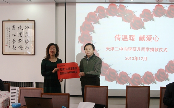 這次儀式的舉辦,既是要讓愛心收獲溫情,也是希望喚起更多人的關(guān)注和支持,我們真誠的希望李研升同學在二中師生的幫助中,在社會更加廣泛的關(guān)注中,盡快康復(fù),重返校園!