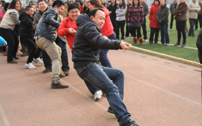 流行全世界的騎馬舞音樂的的響起拉開了活動的序幕。今天,在操場上翩翩起舞的不是學(xué)生而是我們的老師——辛勤的園丁。老師們不是手執(zhí)粉筆在課堂上孜孜不倦,而是走下課堂跳起了勁歌熱舞,舞動著他們對生活的熱情。熱身舞過后開始了比賽,老師們個(gè)個(gè)身輕如燕和同伴配合在長繩之間,步伐矯健的將足球射入門內(nèi)。集體拔河項(xiàng)目把比賽推到了高潮,各年級、各科室的老師為小組進(jìn)行競技,雖然比賽的宗旨是友誼第一比賽第二,可老師們在比賽中還是為自己的隊(duì)伍取得到勝利而全力以赴,有的老師甚至摔倒了也不在乎爬起來繼續(xù)比賽,場外加油聲、喝彩聲此起彼伏熱鬧非凡。平時(shí),他們也許嚴(yán)肅,也許溫柔,但此時(shí),他們都熱情洋溢如同孩子一般朝氣蓬勃。