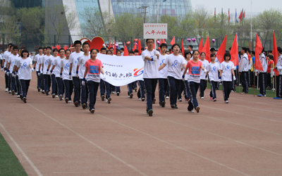 2013年4月28日,早在6:30,全體運動員就懷揣著激動與期待整齊地排著方隊在指定地點集合,隨后安靜整齊地進入操場。在準(zhǔn)備就緒后,是四十二中獨具特色的方隊展演,共分為國旗、校旗及班級三大陣營。每個班的同學(xué)還寫了專屬于自己班的標(biāo)語,在這些熱血激昂的詞語下,大踏步地走向前方,吶喊出我們對運動會,對生活的信心。有的班級更是獨出心裁地設(shè)計了自己班的班服和班旗,比如高二四班同學(xué)的班旗,展開的雙翅之中是一顆萌動的心,象征著同學(xué)們團結(jié)互助、齊心協(xié)力地在青春道路上相互扶持著展開自己追逐夢想的翅膀。有的班級(我記不清是哪個班了,視頻里有)手執(zhí)心形氣球,表達(dá)了他們有著一顆積極向上、永不言敗的心。同學(xué)們通過各種方式展現(xiàn)出了他們的青春洋溢的活力。在各方隊展示之后,出席本次運動會的校方領(lǐng)導(dǎo):孔校長、丁書記、刑校長、沈校長、孫校長、劉校長及四位年級組長分別入席。其中丁書記代表講話,沈校長宣布此次運動會正式開始。