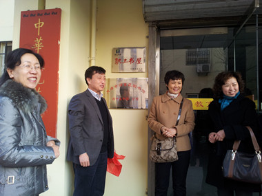 河?xùn)|區(qū)文化局杜穎副局長(zhǎng)、河?xùn)|區(qū)圖書館館長(zhǎng)孫曉梅同志和我校領(lǐng)導(dǎo)、師生代表參加揭牌儀式