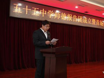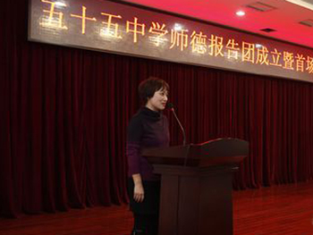 12月3日下午,五十五中學(xué)在報(bào)告廳隆重召開(kāi)師德報(bào)告團(tuán)首場(chǎng)師德報(bào)告會(huì)。學(xué)校領(lǐng)導(dǎo)為報(bào)告團(tuán)成員頒發(fā)了榮譽(yù)證書(shū)。劉志麗、王文、劉桂賢三位老師用他們質(zhì)樸的語(yǔ)言,娓娓道來(lái)自己的教育故事,他們的感人事跡詮釋了高尚師德的豐富內(nèi)涵,使全體教師再一次感受到了作為一名優(yōu)秀教師的尊嚴(yán)和自豪。老師們紛紛表示今后要以師德模范教師為榜樣,在教育工作崗位上兢兢業(yè)業(yè)、踏踏實(shí)實(shí)地做好本職工作,用公正、愛(ài)心鑄造崇高的師魂,為培養(yǎng)高素質(zhì)人才、構(gòu)建和諧校園而努力。