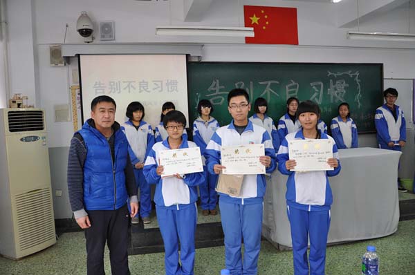 此次活動(dòng)首先是在高二年級(jí)全體學(xué)生中,圍繞“養(yǎng)成好習(xí)慣,爭(zhēng)做文明生”的展開(kāi)討論,在班內(nèi)廣泛開(kāi)展評(píng)比活動(dòng),然后每個(gè)班推薦出行為比較優(yōu)秀的學(xué)生,由該名學(xué)生代表本班同學(xué)參加演講比賽。最后有12個(gè)班級(jí)共12名選手參加了演講比賽決賽。